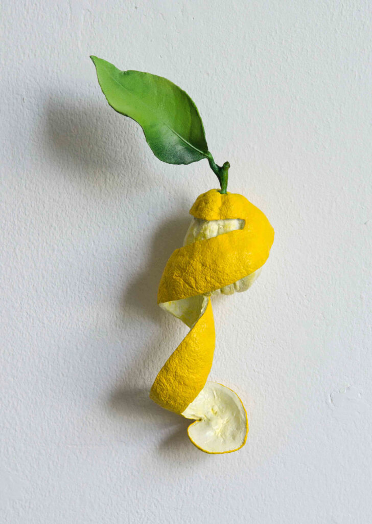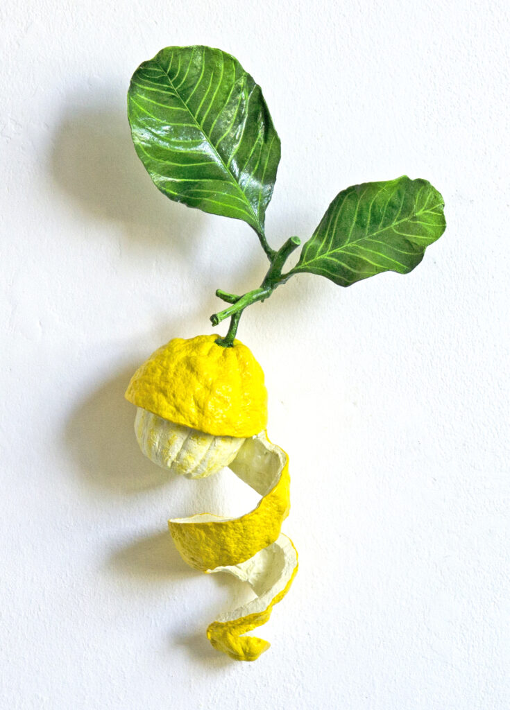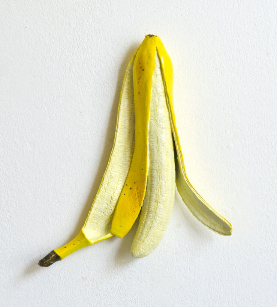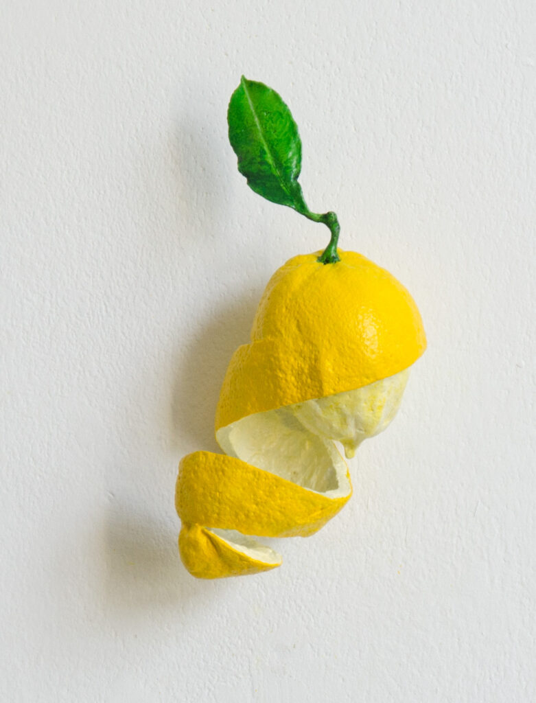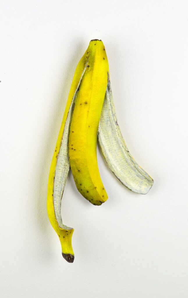 „Isabel Ritter captivates with her fascinatingly realistic bronze sculptures. The colorfully painted fruit peels are cast using the traditional bronze casting process and hand-painted with multiple layers of paint. These joyful sculptures hang boldly on the wall, creating space for perception.„